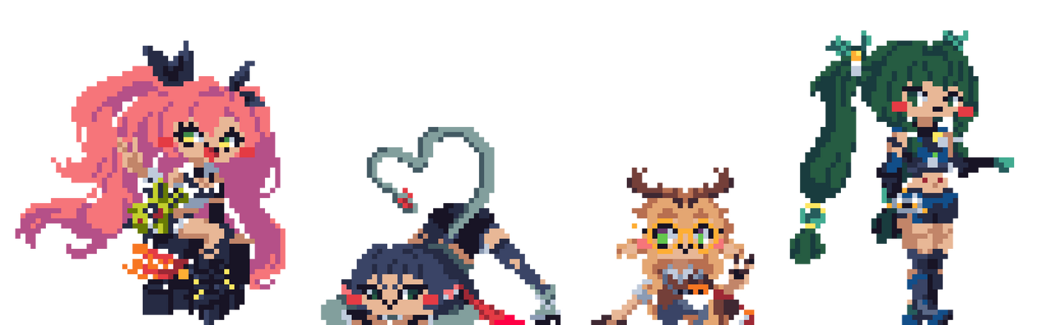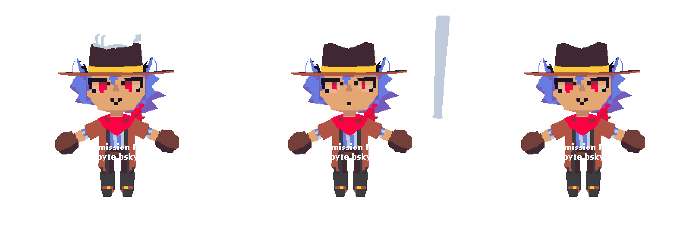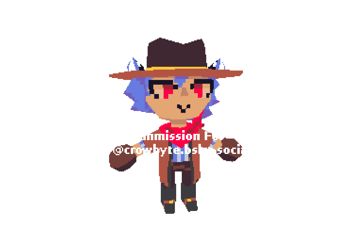 The amount of details in a pixelart sprite / lowpoly model is limited so overly complicated characters will not have every single detail present on their original design, otherwise it would look like a pixelated mess.If you want to commission anything in a specific style I already posted before feel free to ask.You can use my art for personal uses or for streaming uses (like emotes, profile picture, badges, etc.).You can not use my art for commercial purposes without my permission.I am allowed to post the finished commission on my social media once it is finished (unless we agreed on a date beforehand, for example a birthday surprise or a secret project).